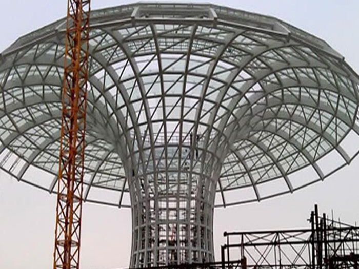 二、球形网架结构因其结构新颖,受力合理,自重轻、用钢量低等优点。如大型体育场馆球形张掖螺栓球网架、公共场馆球形网架、电厂张掖螺栓球网架、水泥工业球形网架、仓储物流球形网架、张掖干煤棚工业球形网架、张掖收费站张掖加油站球形网架、展览中心、影剧院、商场、航站楼、候车厅、工厂张掖车间、仓库、电视塔等球形螺栓球节点网架。国内球形网架结构主要分为:张掖焊接球节点网架及螺栓球节点网架两种。螺栓球节点网架其构件工厂内加工量较大,现场安装便捷,适用于现场工期紧,张掖施工条件、用电量受制约,网架形状复杂、张掖杆件定位困难的异形结构。螺栓球节点球形网架系统基本由张掖杆件、螺栓球、支撑支座等组成。按照节点形式可分为交叉张掖桁架体系、四角锥体系、三角锥体系等。支撑方式多为固定支座支撑。对于大面积、大跨度及有特殊受力或伸缩要求的网架结构可采用橡胶支座、滑移支座、球铰支座等支撑形式,以满足结构自身的受力稳定、均衡,便于内力释放等设计要求。